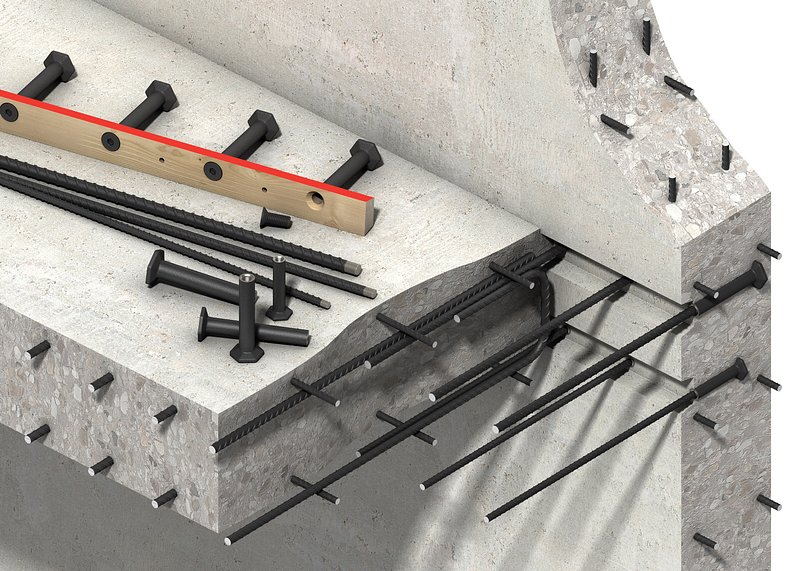 Les ancrages comportant un filetage interne sont encastrés dans le voile béton puis lors de la construction de la dalle adjacente, des armatures avec filetage parallèle Bartec sont insérées dans les ancrages.
