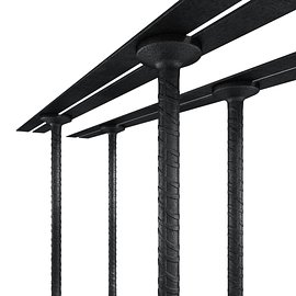 Les haltères sont soudées aux rails plats selon des écartements déterminés par le logiciel de calcul Ancon ou par une méthode de calcul adaptée. Les rails Shearfix sont fabriqués à partir de bandes d’acier de 16mm de largeur. L’interstice entre les rails permet le passage des fines lors du bétonnage et est également utilisé pour permettre le clouage sur les coffrages lorsque le dispositif est mis en œuvre ‘tête en haut’ avant la pose du ferraillage principal.