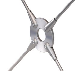 Les disques de répartition permettent d’assembler jusqu’à huit barres. Ils sont utilisés pour les contre-ventements traditionnels, ou lorsque plusieurs barres convergent sur un même noeud d’assemblage.