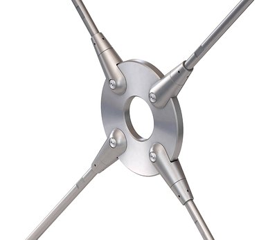 Quando forma un rinforzo incrociato, una giunzione incrociata offre un’alternativa semplificata a un disco di ancoraggio e riduce al minimo il numero di connettori a forcella e dadi di bloccaggio necessari. Le giunzioni incrociate sono disponibili in carbonio e acciaio inossidabile per adattarsi a barre di dimensioni da 10 a 24.
