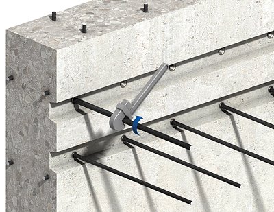 Questo è il sistema di continuità più rapido, più semplice e soprattutto più sicuro, poiché elimina la necessità di forare la cassaforma o il calcestruzzo ed esclude i pericoli associati alle barre sporgenti e al raddrizzamento delle barre in cantiere. Sostituisce inoltre i ferri uncinati e le staffe a U, semplificando il posizionamento delle barre e minimizzando la congestione nella parete.